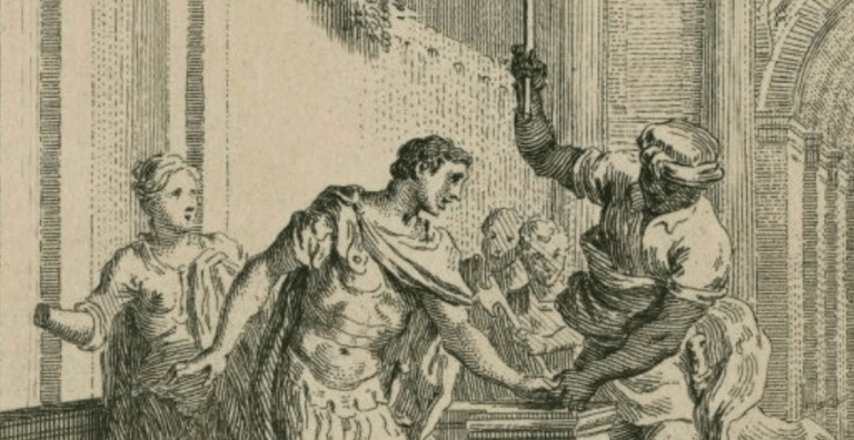 Meanwhile (and a little later), Titus Andronicus leads a morning hunt for a panther. Along with him are a few students, Marcus, Saturninus, Bassianus, Lavinia, and Chiron and Demetrius. Saturninus jokes that it’s too early for women to be awake, but Lavinia rebukes him. Chiron and Demetrius, off to the side, discuss their plan to abduct and rape Lavinia.